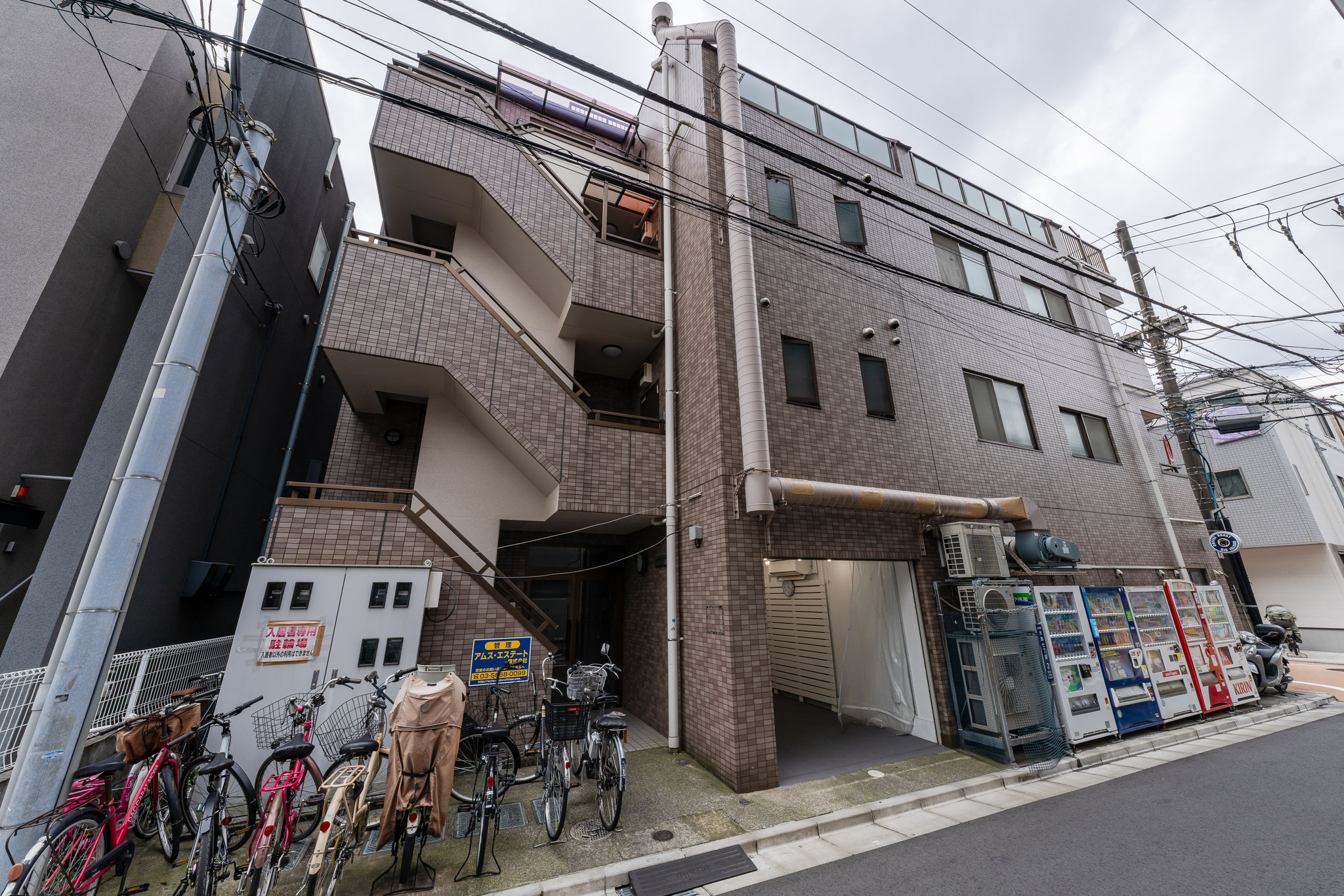 東京都江東区大島7-2-2ヘアカットのお店・コーヒー豆屋が入ってるビル裏手のエントランスを入り