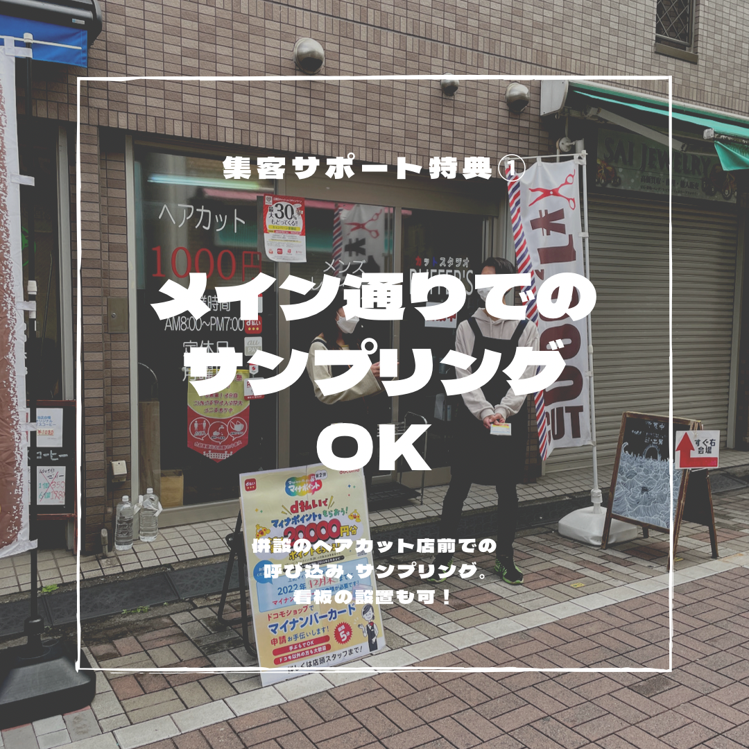 店舗内外にチラシを貼り宣伝し集客のお手伝いをさせていただきます。写真など共有していたたければ、